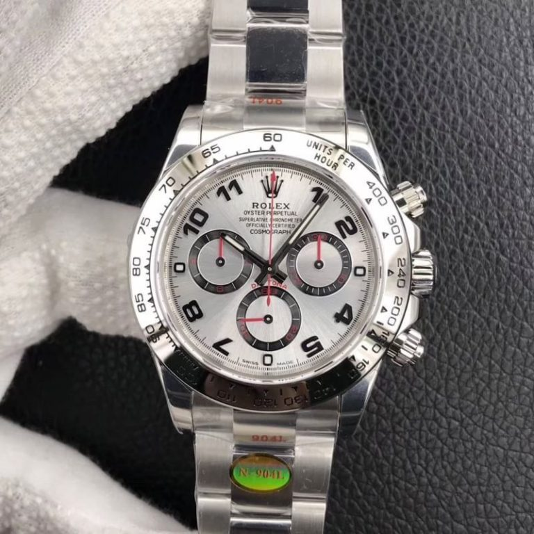 N廠V3S版Rolex Daytona 116509-0037,採用4130自動機械機芯與正品級904L精鋼打造,搭配銀白色面盤與藍寶石鏡面,細節精緻超越市售版本。40mm錶徑、摺疊扣設計、防水達100米,是目前最頂規的迪通拿高仿錶款。