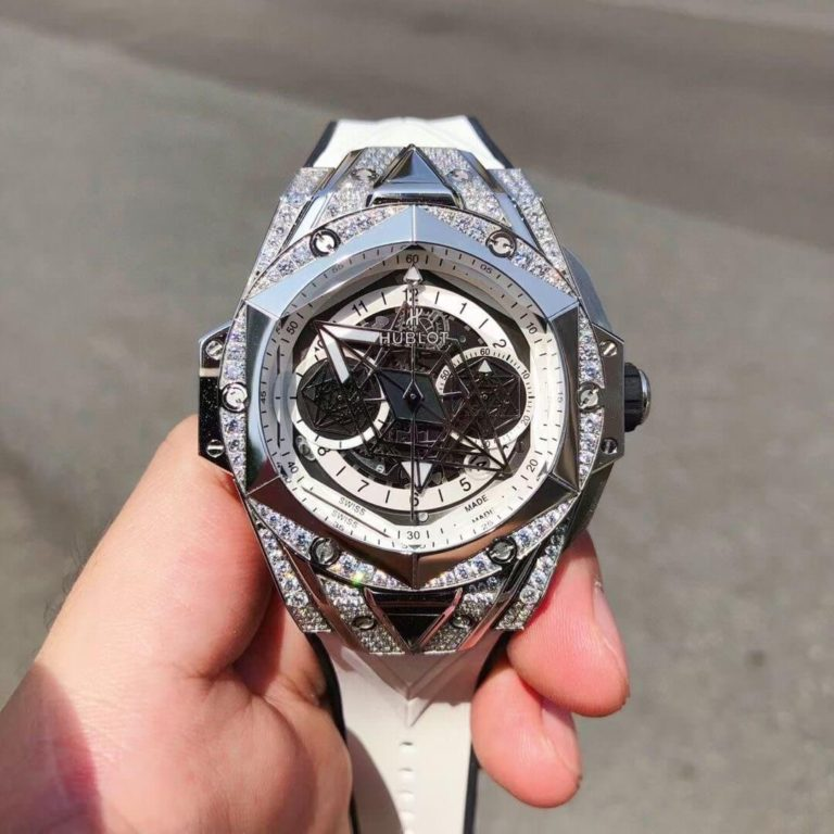 宇舶Big Bang Sang Bleu II刺青腕錶,與知名刺青工作室Sang Bleu合作打造,45mm錶殼融入幾何切割與六邊形表圈設計。菱形時分針與雙六邊形盤針營造獨特視覺幾何感。搭載7750自動計時機芯、防刮藍寶石鏡面與進口氟橡膠錶帶,兼具設計感與舒適度。
