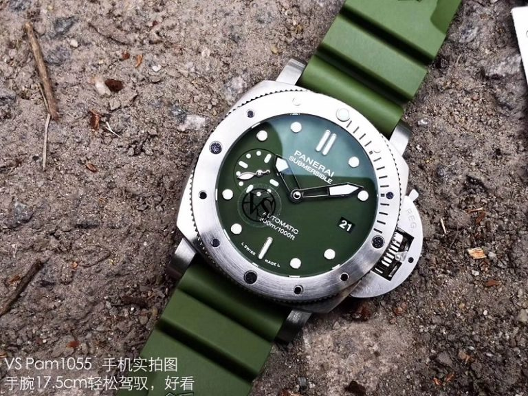 VS廠2020新品PAM01055綠海魂,為PAM961的42mm版本,更適合亞洲人手腕,男女皆宜佩戴。這是沛納海首款42mm綠色錶盤設計,搭配與正品一致的綠色日曆顯示,質感與辨識度兼備,成為小錶徑愛好者的理想選擇。